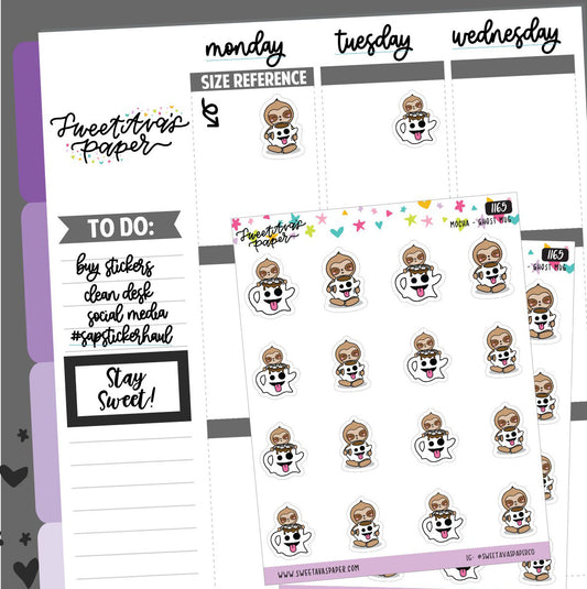 Ghost Mug Planner Stickers - Mocha The Sloth [1165]