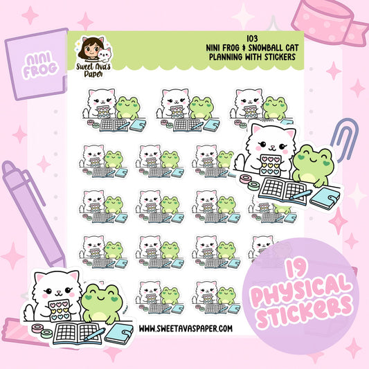 Nini Frog & Snowball Cat Planning With Stickers – Physical Kawaii Planner Stickers for Journals [103]