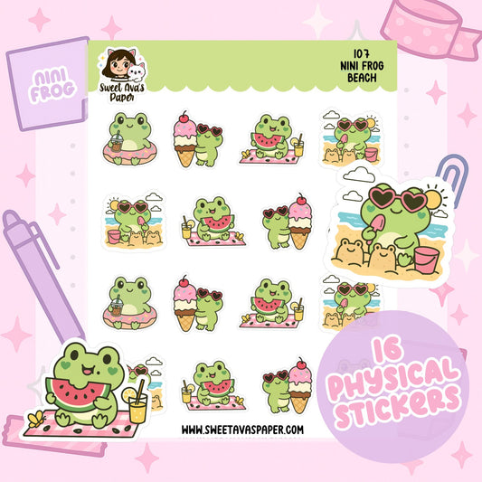 Nini Frog Beach Planner Stickers – Physical Kawaii Summer & Vacation Stickers for Planners [107]