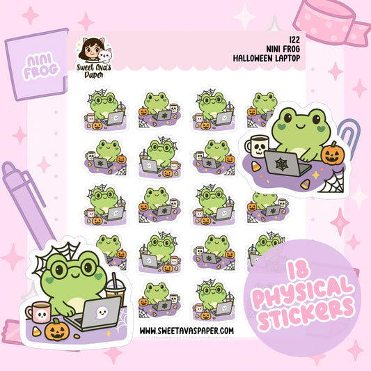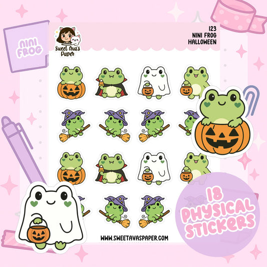 Nini Frog Halloween Planner Stickers | Cute Kawaii Frog, Ghost & Pumpkin Stickers for Planners, Journals & Scrapbooks [123]