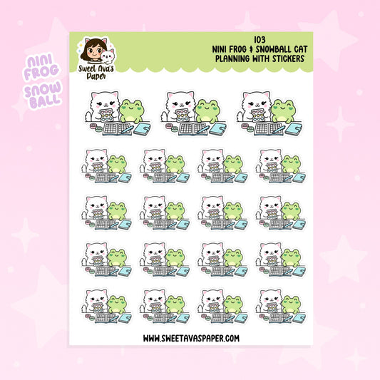 Nini Frog & Snowball Cat Planning With Stickers – Physical Kawaii Planner Stickers for Journals [103]