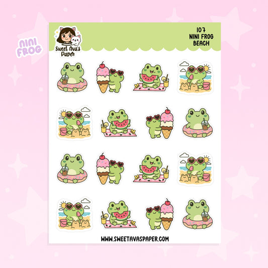 Nini Frog Beach Planner Stickers – Physical Kawaii Summer & Vacation Stickers for Planners [107]