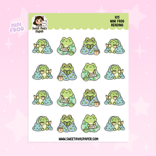Nini Frog Reading Planner Stickers – Physical Kawaii Cozy & Book Lover Stickers for Planners [105]