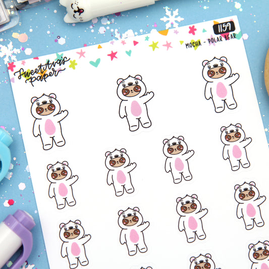 Polar Bear Costume Planner Stickers - Mocha The Sloth [1159]