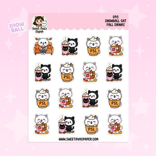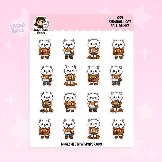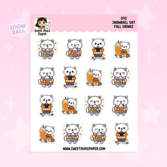 Snowball Cat Fall Drinks Planner Stickers – Physical Kawaii Autumn Coffee & Seasonal Stickers [094]