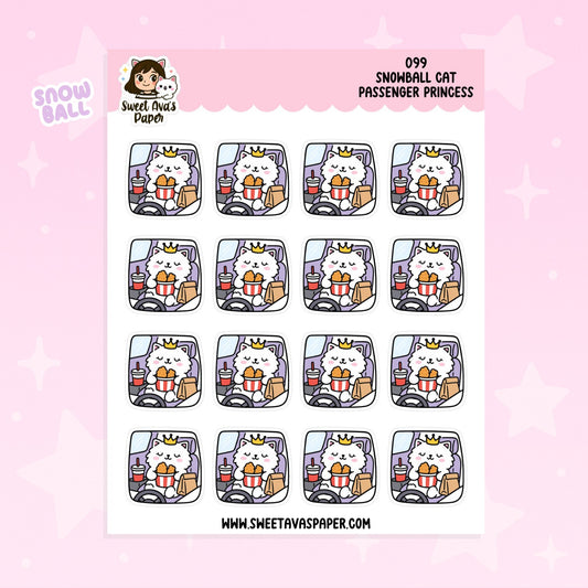 Snowball Cat Passenger Princess Planner Stickers – Physical Kawaii Travel & Car Ride Stickers [099]