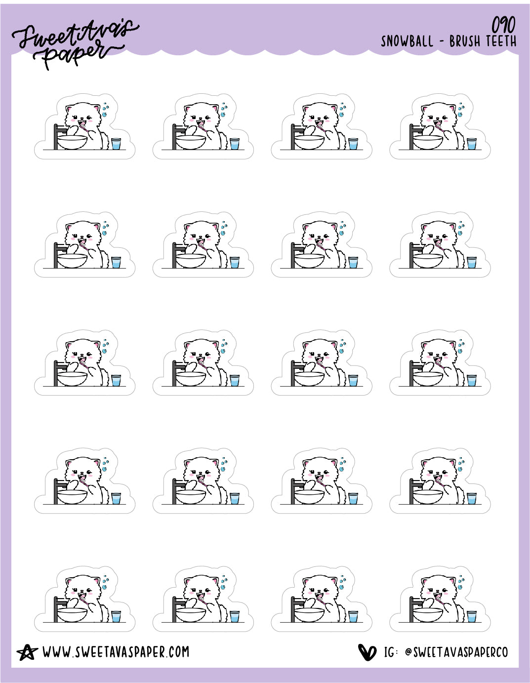 ICON SIZE - Brush Teeth Stickers - Snowball The Cat - [090]
