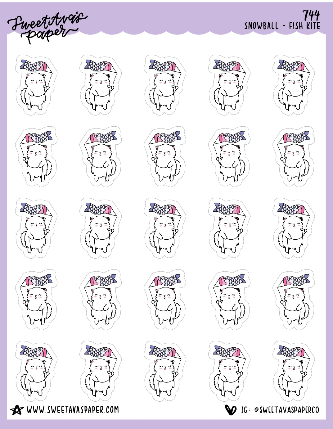 ICON SIZE - Fish Kite Planner Stickers - Snowball The Cat - [744]