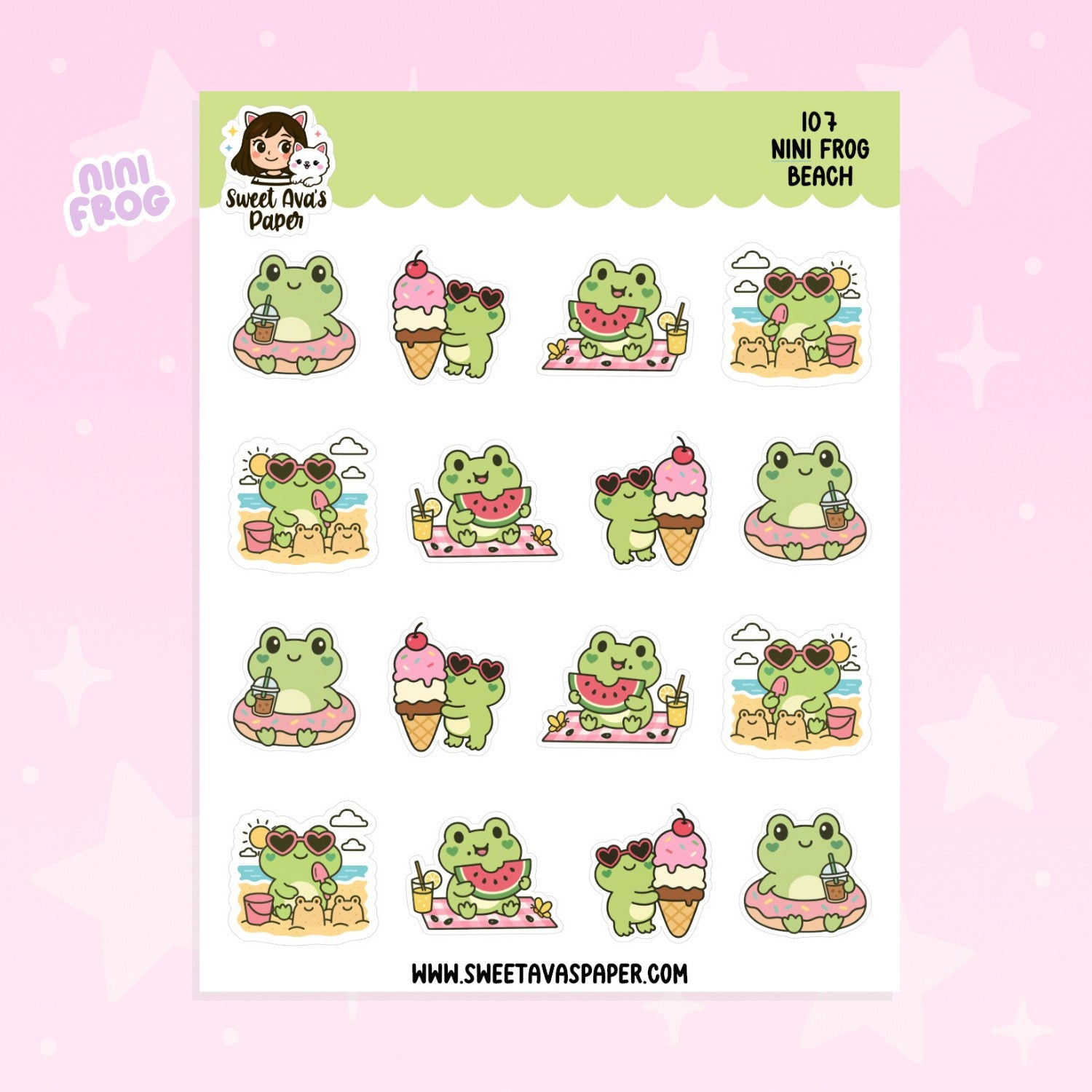 Nini Frog Beach Planner Stickers β Physical Kawaii Summer & Vacation Stickers for Planners [107]