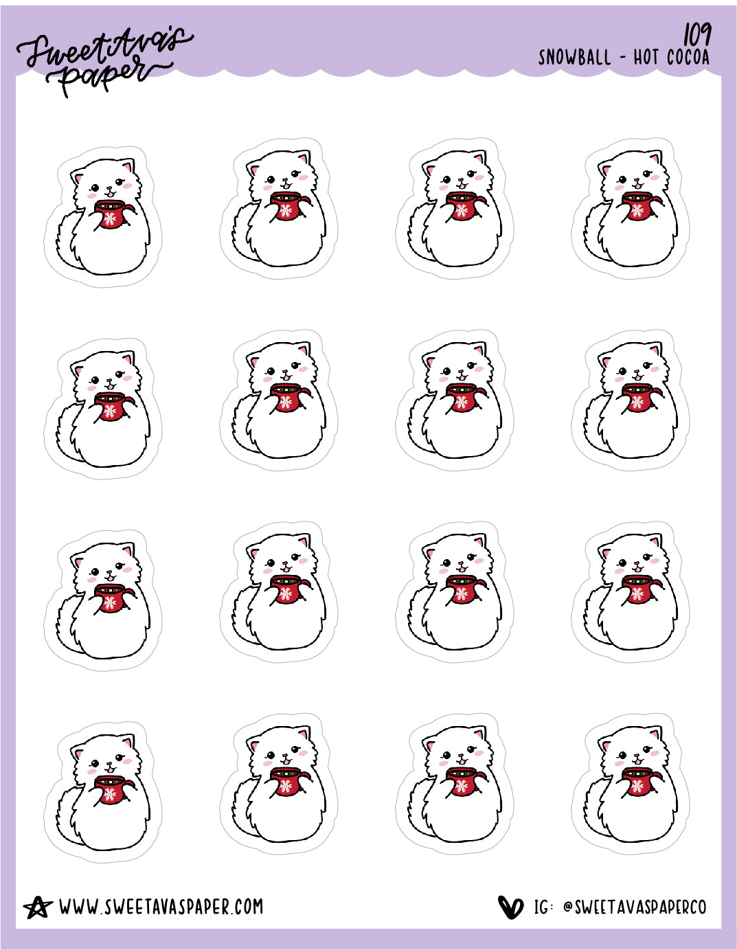 Peppermint Mocha Stickers - Snowball The Cat - [109]
