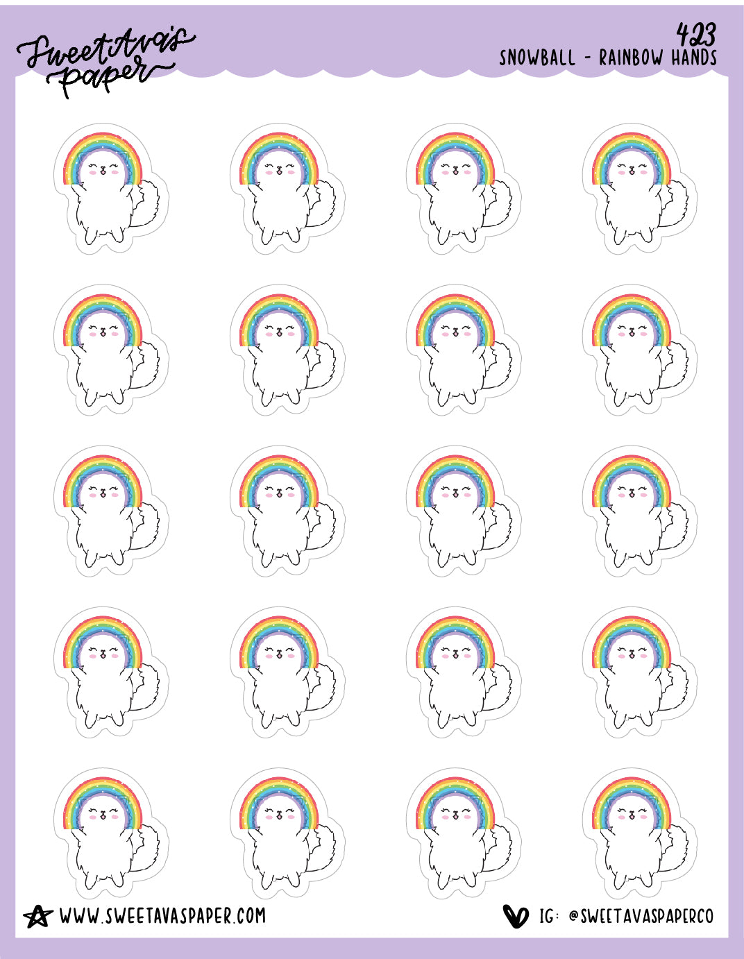 ![ICON SIZE - Rainbow Hands Planner Stickers - Snowball The Cat - [423]](http://www.sweetavaspaper.com/cdn/shop/products/423_SNOWBALL_RAINBOW_HANDS.jpg?v=1682087649&width=1445)