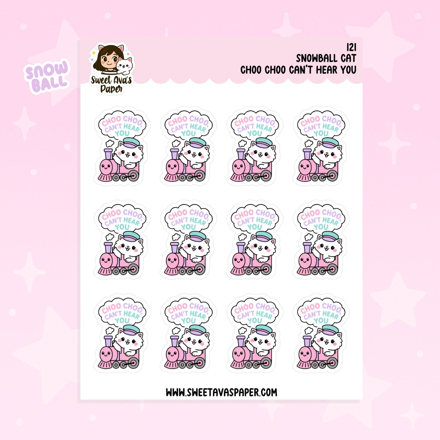 Snowball Cat Planner Stickers – Choo Choo Can’t Hear You [121]