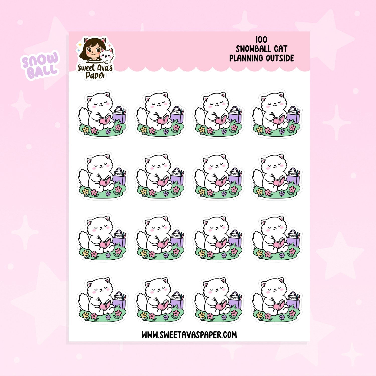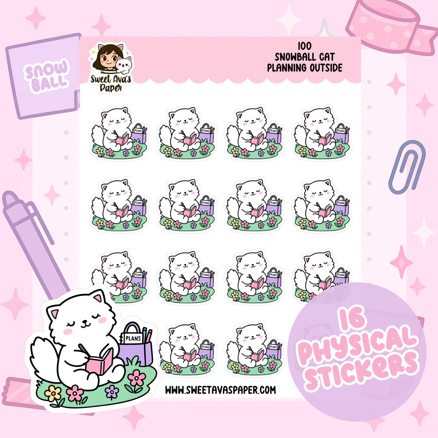 Snowball Cat Planning Outside Planner Stickers – Physical Kawaii Journaling & Picnic Stickers [100]