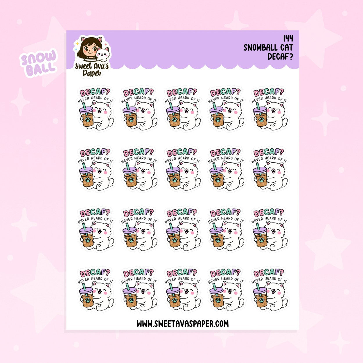 Snowball the Cat Planner Stickers – Decaf? Never heard of it - Coffee [144]