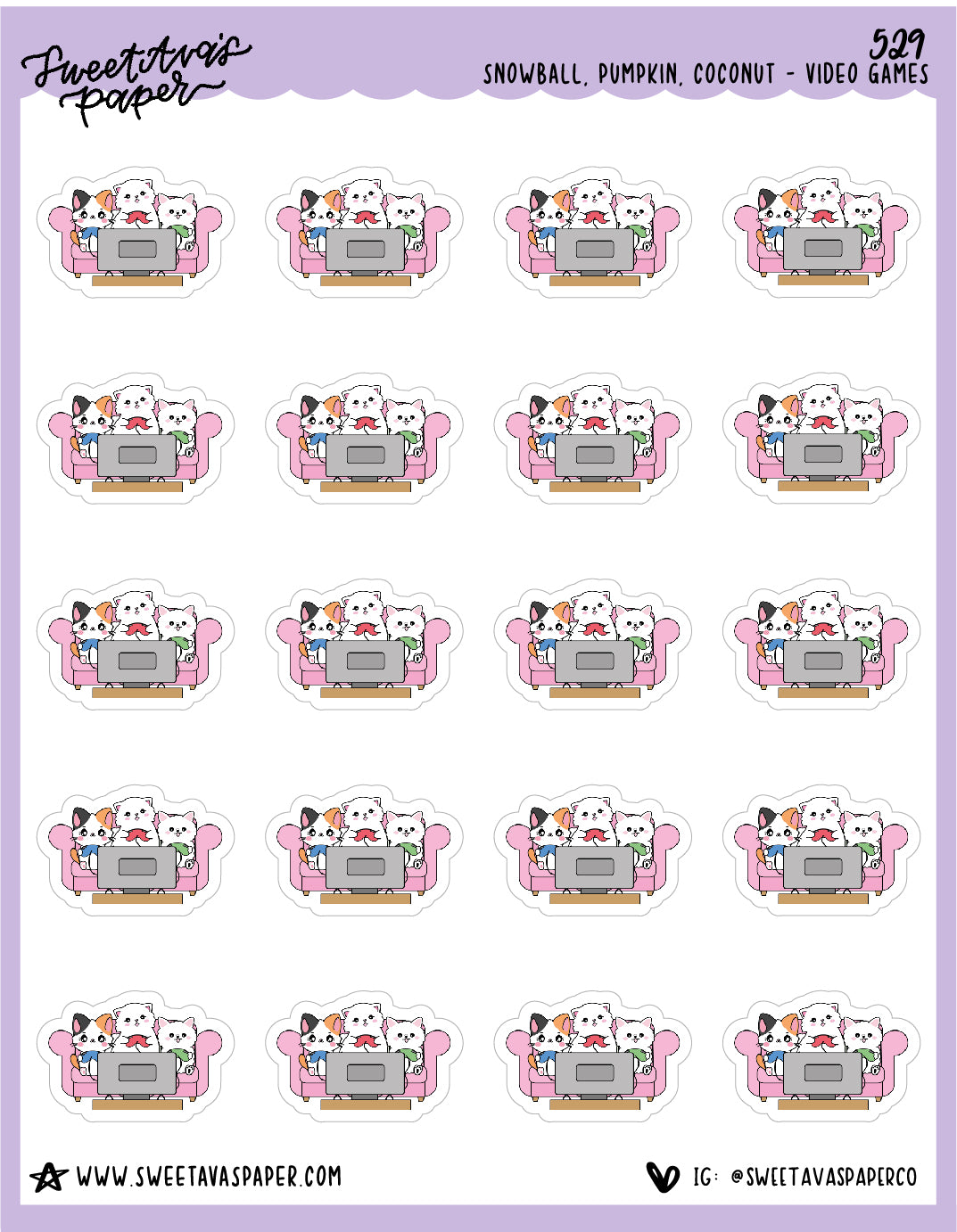 ![Video Games Planner Stickers - Snowball The Cat, Coconut The Puppy, Pumpkin The Calico - [529]](http://www.sweetavaspaper.com/cdn/shop/files/529_VIDEO_GAMES.jpg?v=1682533751&width=1445)