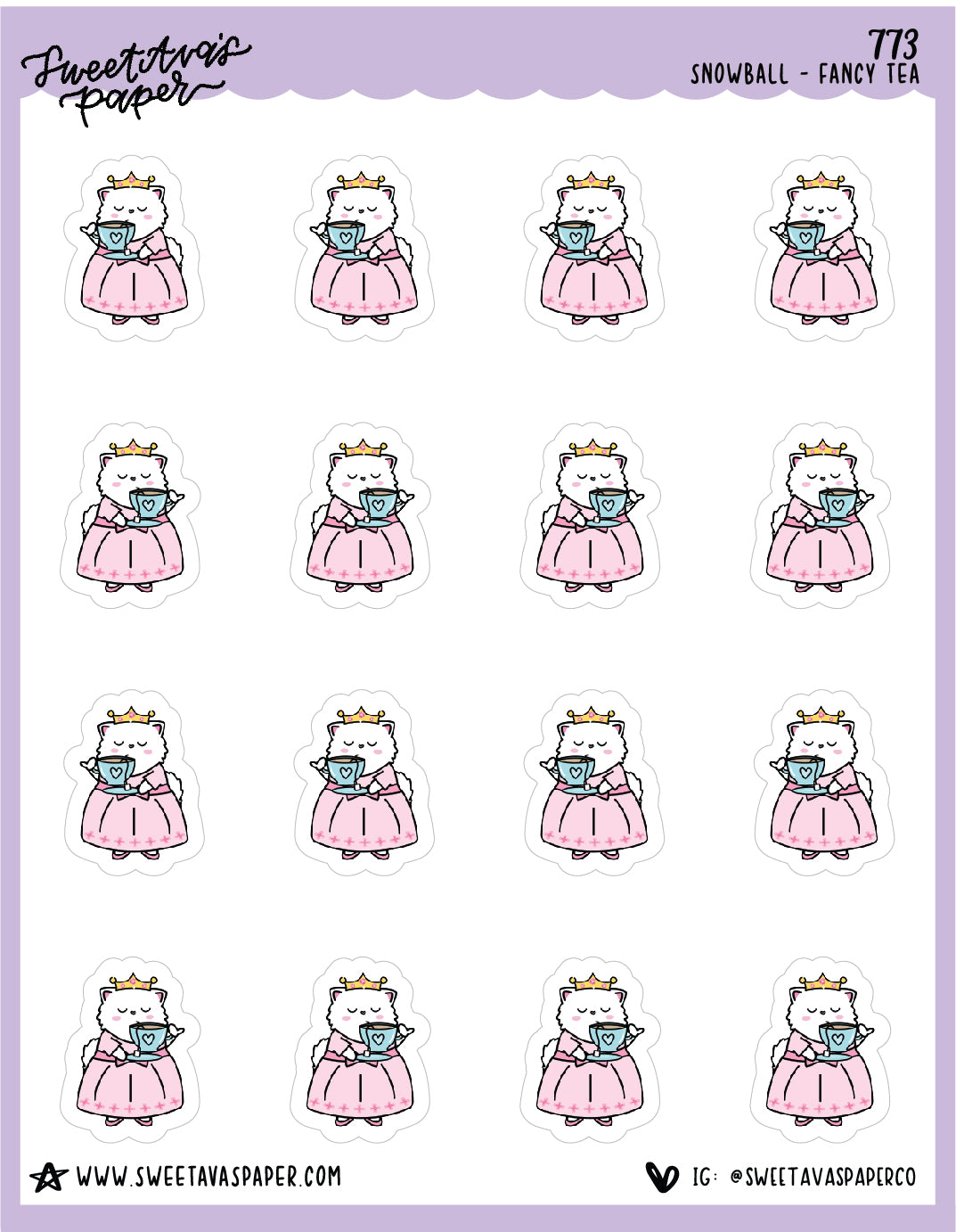 Pinky Out Tea Planner Stickers - Snowball The Cat - [773]