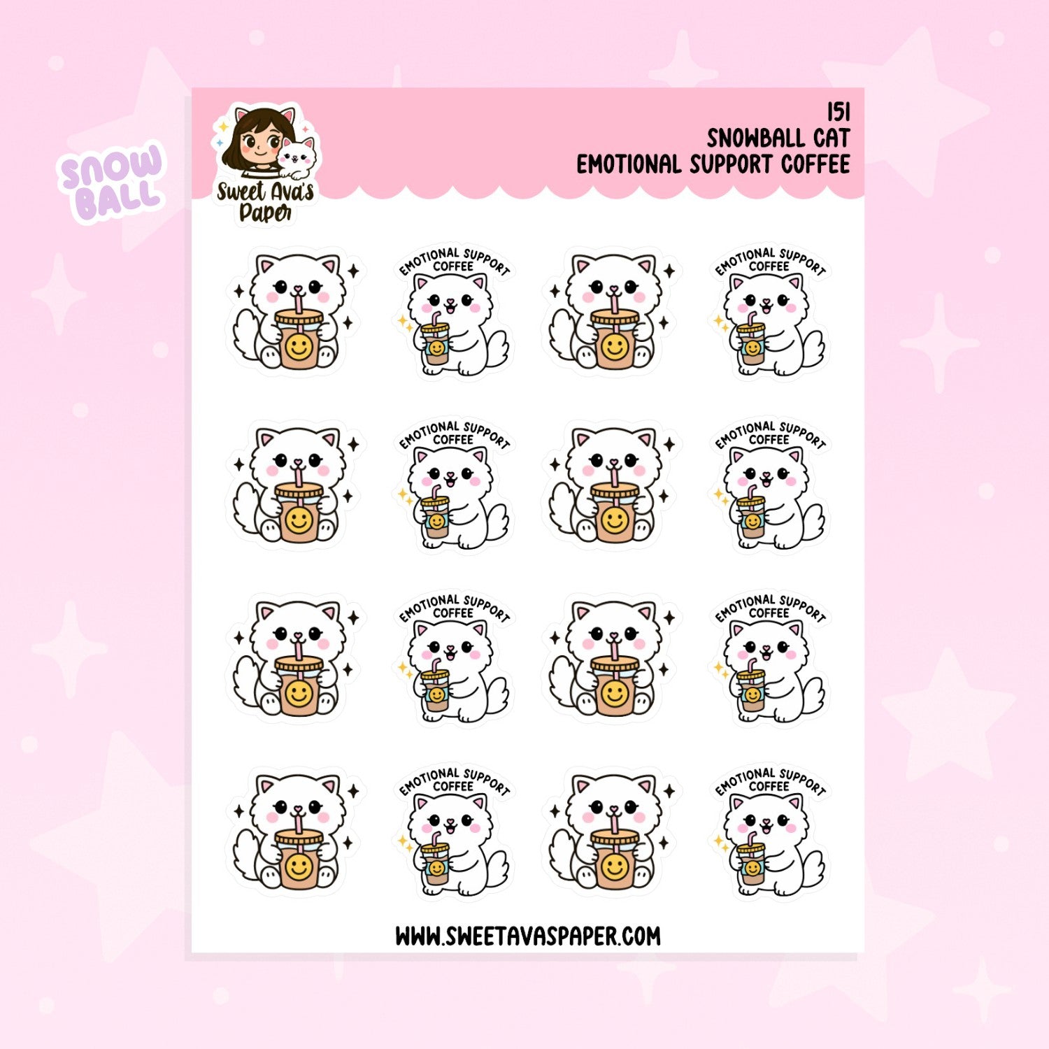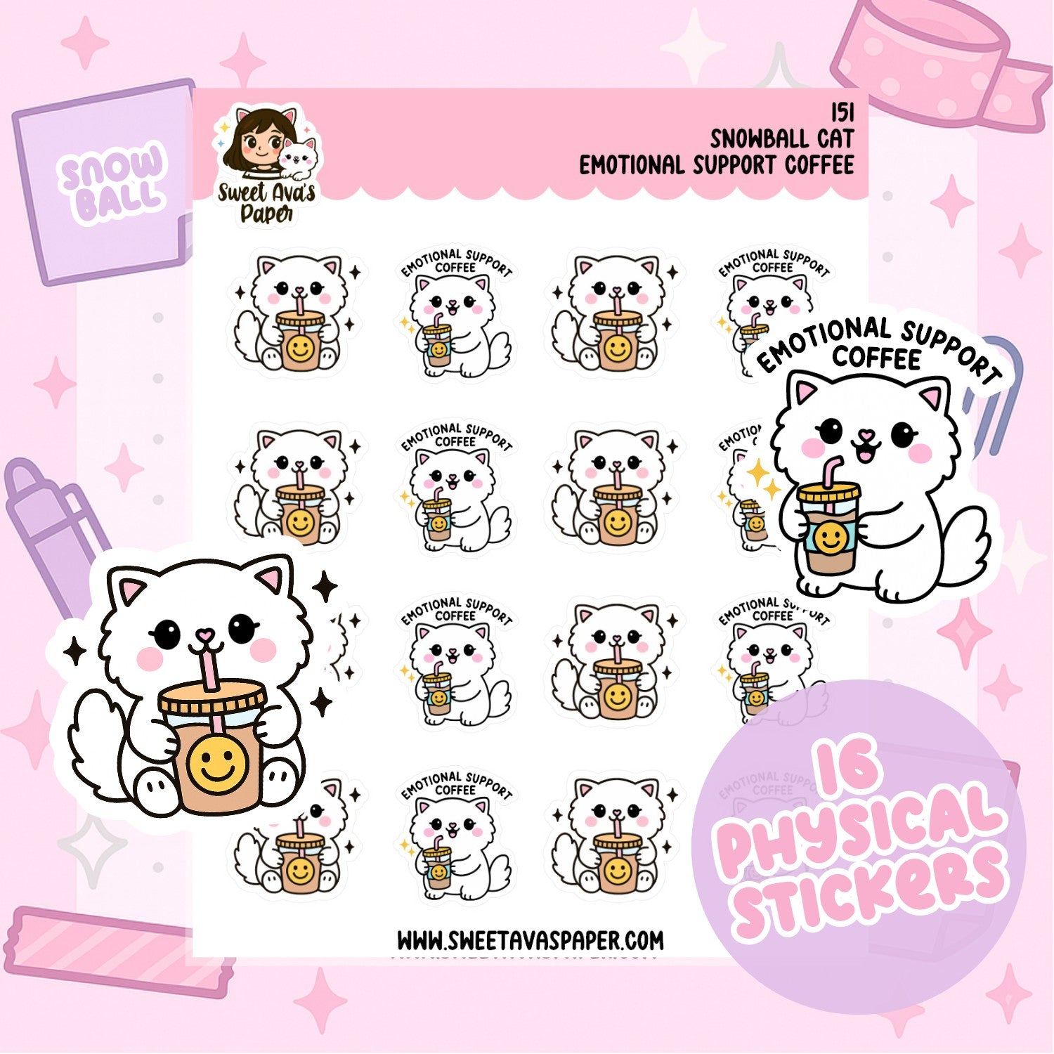 Snowball the Cat Planner Stickers - Emotional Support Coffee [151]