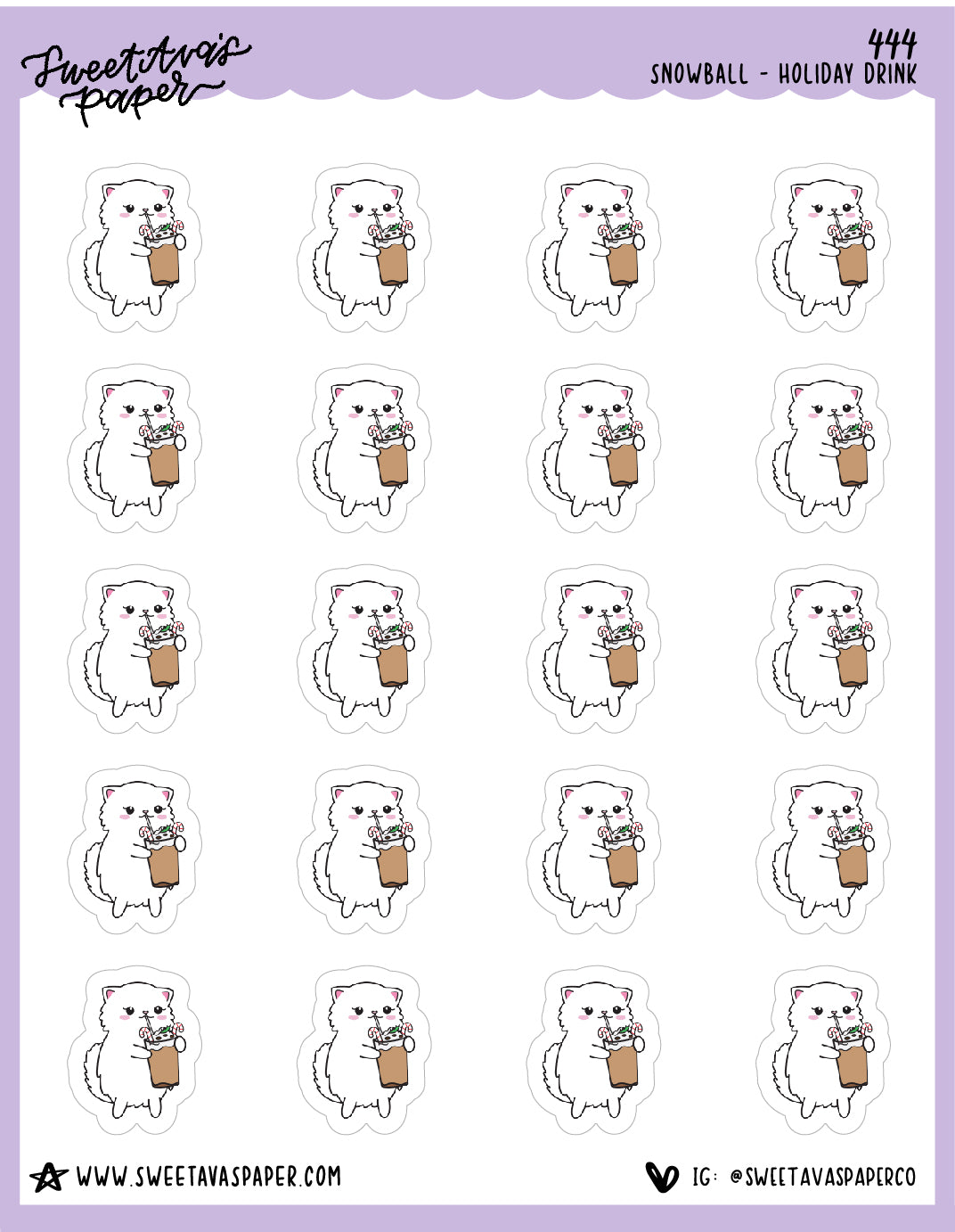 Winter Drink Planner Stickers - Snowball The Cat - [444]